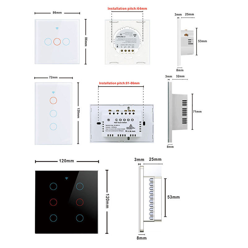 Salida de fábrica NUEVO diseño 433MHz Tuya Smart APP Control Soporte Alexa Google 1 2 3 4 Gang Hidden No Neutral Wifi Smart Switch