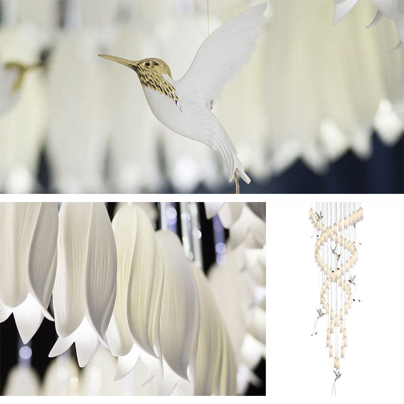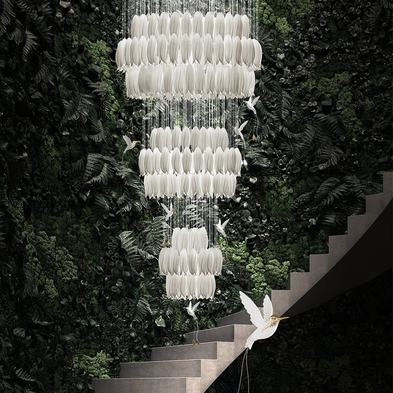 Salida de fábrica Nuevo diseño Decoración de techo alto Candelabros de lujo Modelado Villa Escalera Flor de cerámica Colgante Luz decorativa