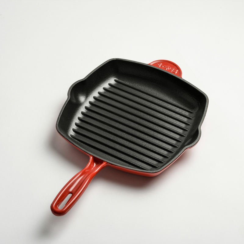 Sartén de hierro fundido con mango largo, plancha para freír esmaltada, nuevo diseño, precio de venta directa de fábrica
