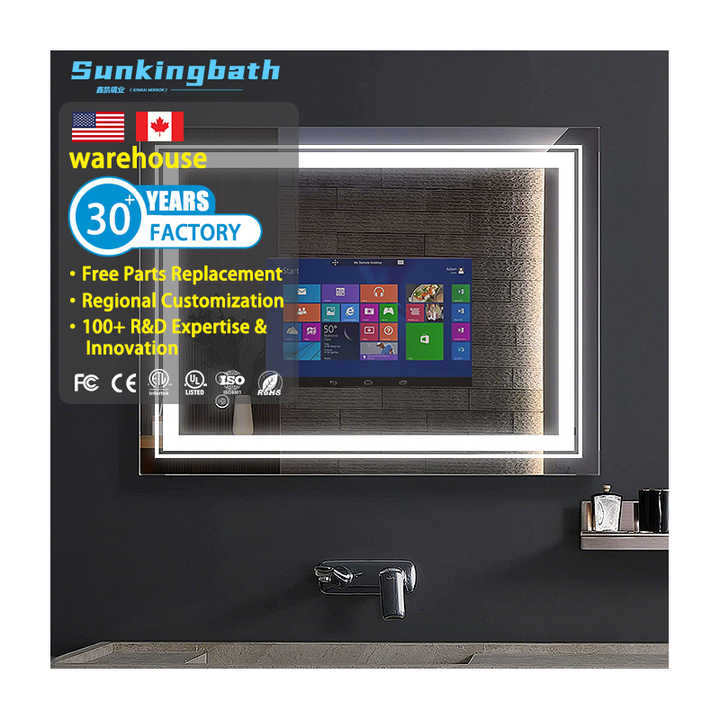 Salida de fábrica Pantalla táctil Rectángulo interactivo Luz LED espejo inteligente Espejo mágico inteligente con TV WIFI