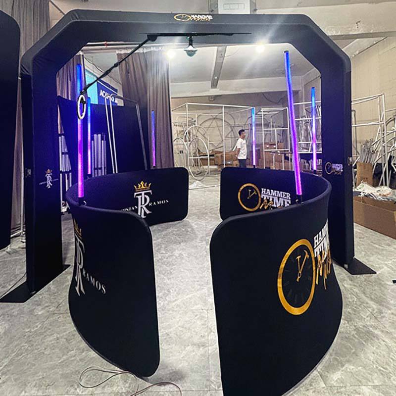 Cabina de Fotos Giratoria 360° con Cristal Transparente, Tamaño Personalizable, Control Remoto, Logotipo Personalizado, Compatible con Smartphones