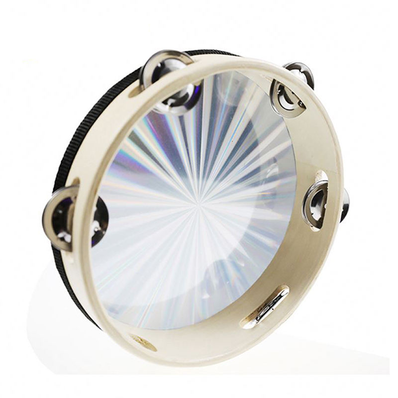Instrumento de tambor educativo Musical de percusión de fábrica para Ktv parte Metal Jingles pandereta para Iglesia tambor de mano de 6 pulgadas