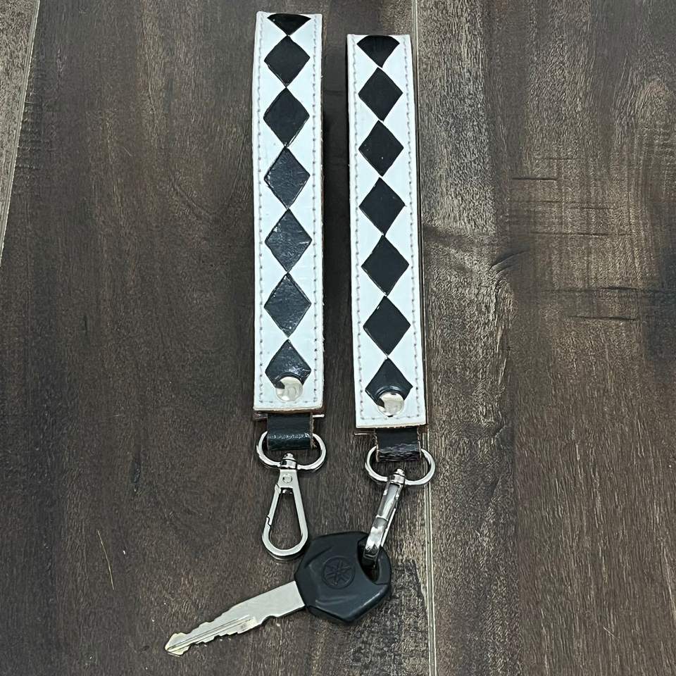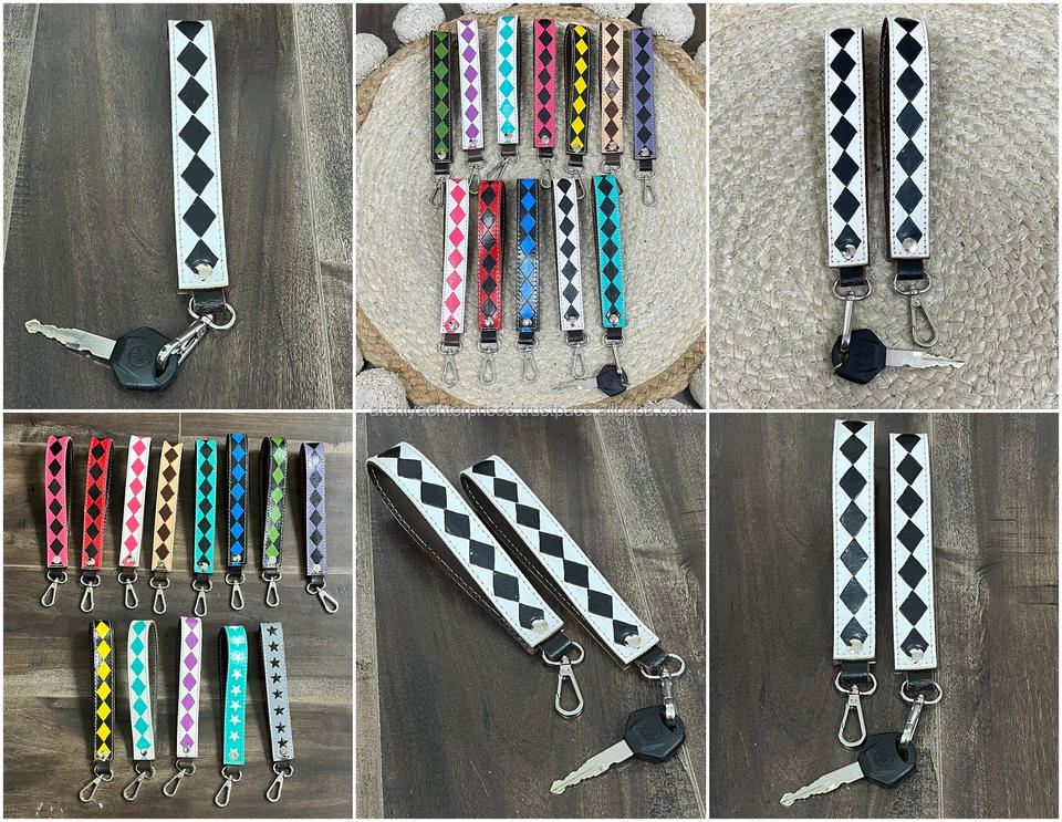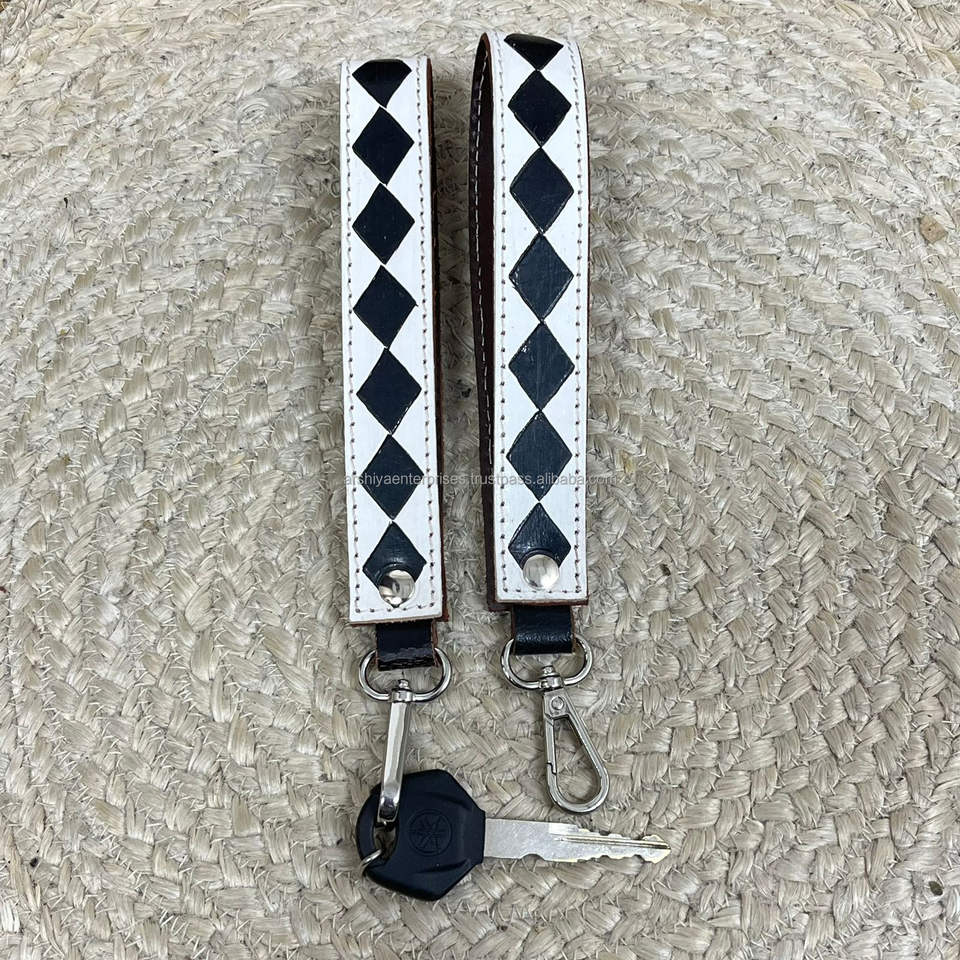 Nombre del producto:Llavero de pulsera de cuero a cuadros genuino