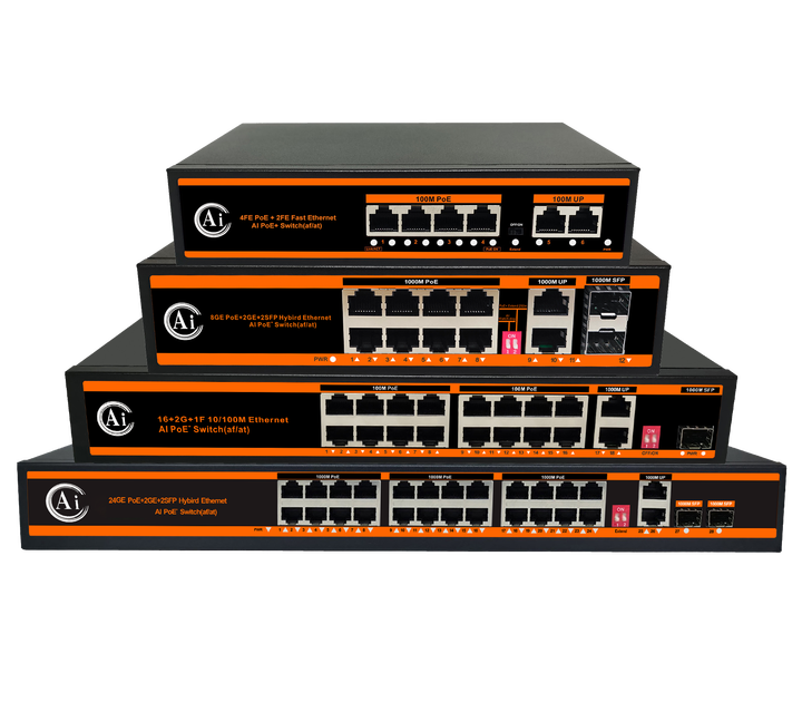 Switch PoE AI de Fábrica, 6, 8, 16, 24 Puertos, Montaje en Rack, 10/100M Gigabit, No Administrado, 48V, Ethernet, Fibra, SNMP, CCTV, Cámara IP