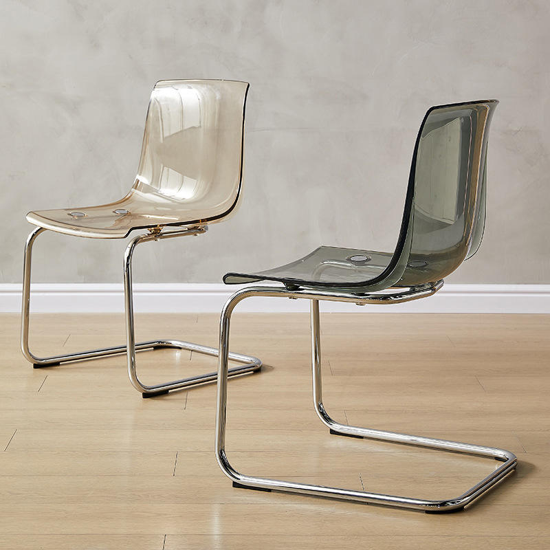 Silla de comedor acrílica popular de fábrica, silla de mesa de comedor minimalista para el hogar de acero inoxidable