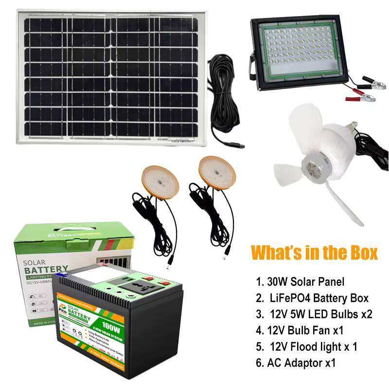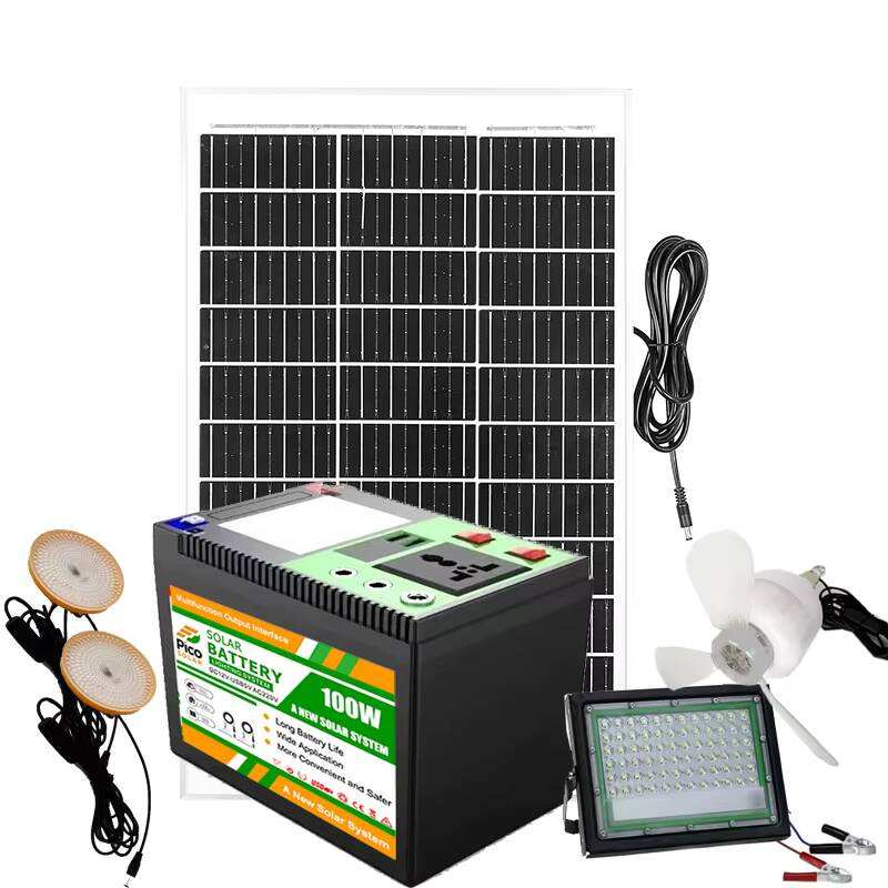 Kit de Iluminación Portátil para el Hogar con Sistema de Energía Solar de 100W, Batería de Iones de Litio, Lámpara de Proyección, Controlador MPPT y Banco de Energía