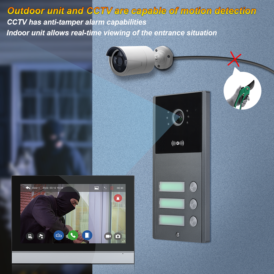 Videoportero con Pantalla Táctil IPS de 10 Pulgadas y Resolución HD 1080P, Precio de Fábrica, Compatible con Detección de Movimiento PIR para Seguridad Exterior, Color