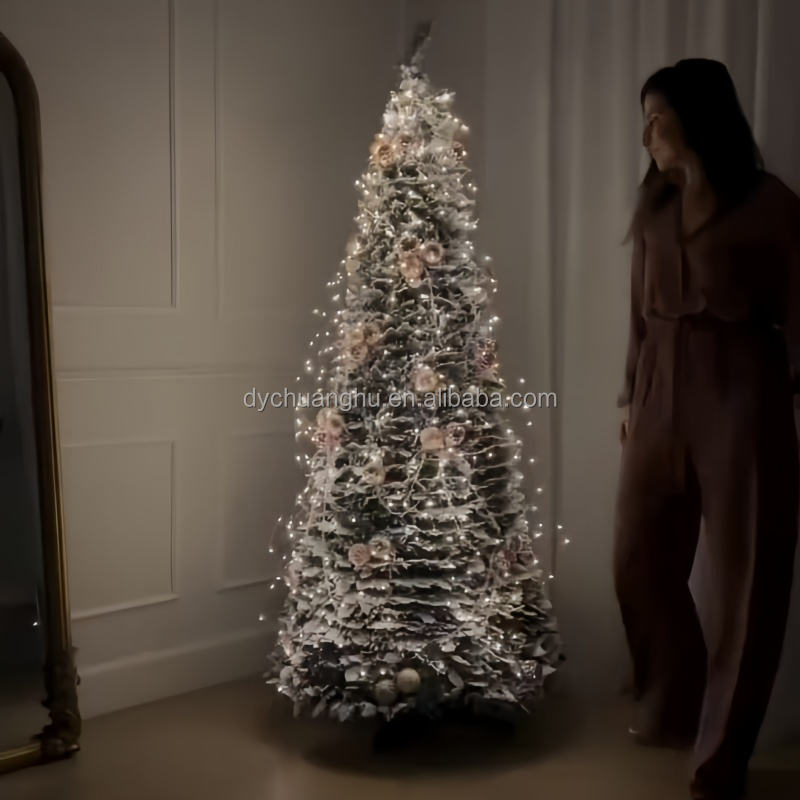 Árbol de Navidad Nevado, Plegable y Luminoso de 120 cm con Luces y Decoraciones, Precio de Fábrica para Fiestas Navideñas