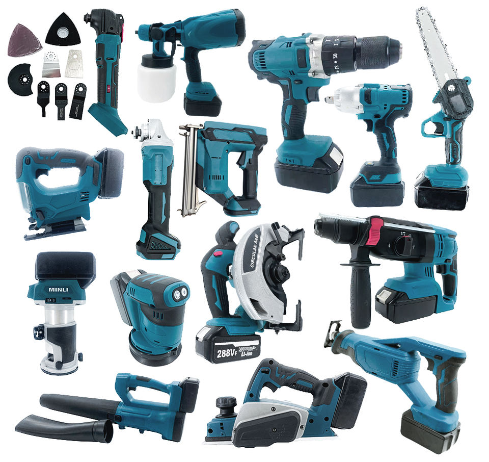Aplanador eléctrico, Martillo eléctrico, Sierra eléctrica, Taladro eléctrico, Pulidora, Llave eléctrica, Pistola de clavos, Amoladora angular, Pistola de pulverización, Soplador