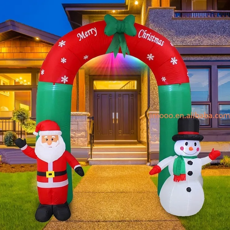 Precio de fábrica 2,4 m LED muñeco de nieve inflable Navidad bienvenida arco muñeca decoración gruesa característica para jardín al aire libre alegría