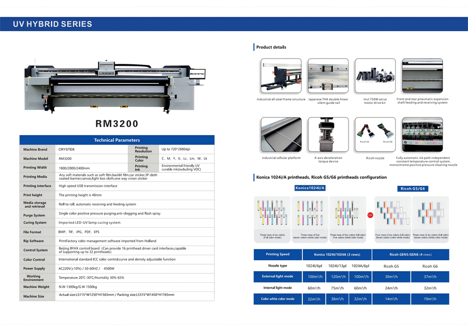 Cabeza de impresión:Ricoh G5, Ricoh G6, Konica 1024I