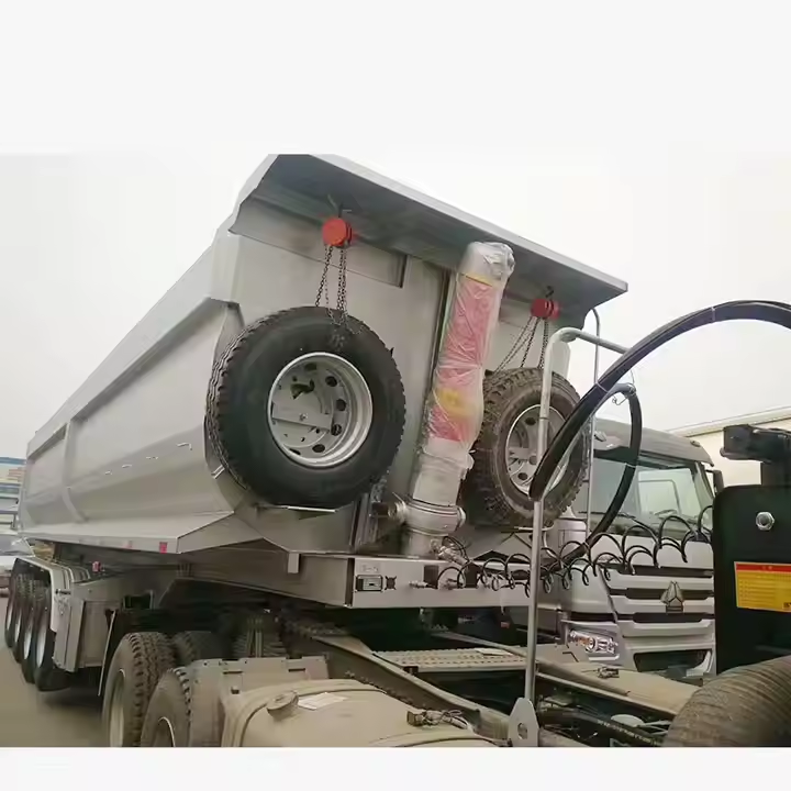Precio de fábrica: Semirremolque volquete trasero de 3 ejes en forma de U con caja de carga de acero de elevación hidráulica, de servicio pesado, 34 m³, 28 toneladas, con tren de aterrizaje fácil.