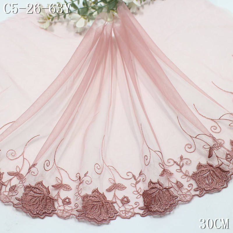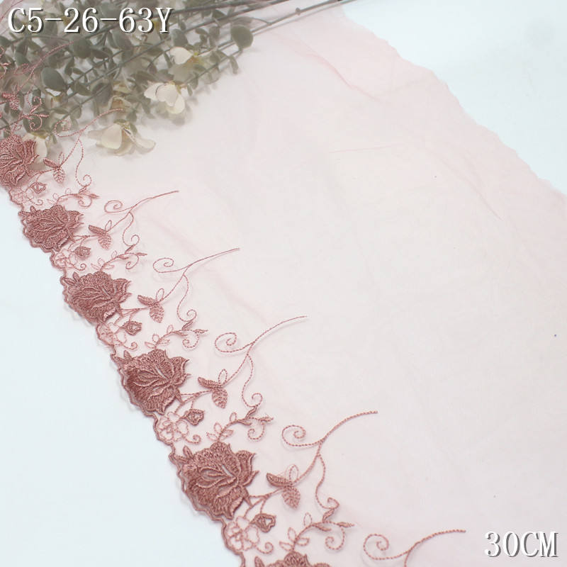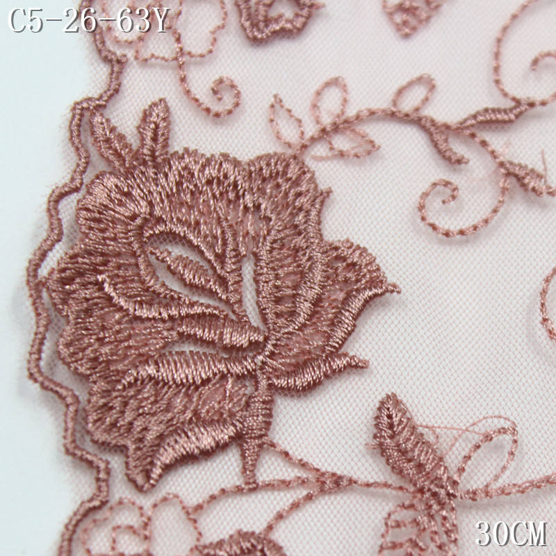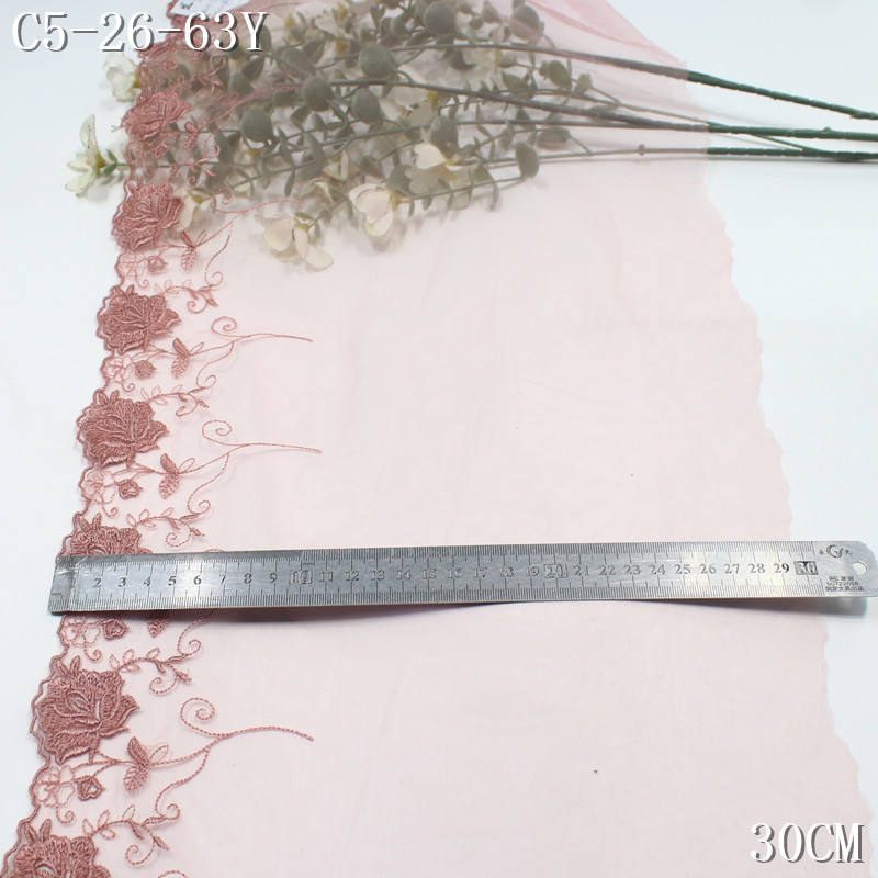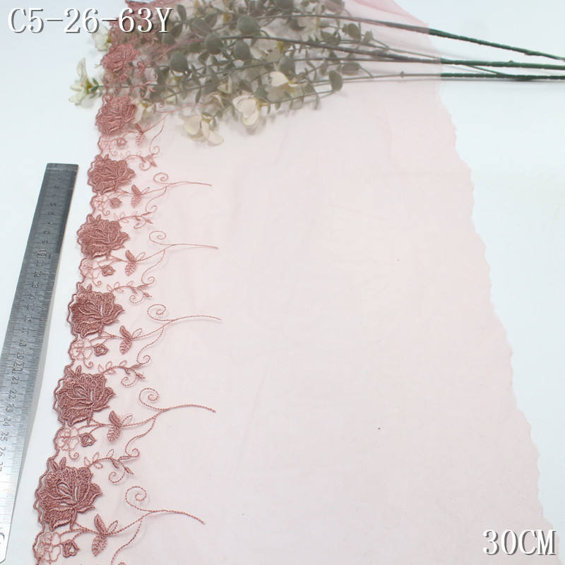 Encaje Bordado de Poliéster de 30 cm con Borde de Malla Floral Rosa, Precio de Fábrica, para Vestidos de Mujer, Accesorios Textiles
