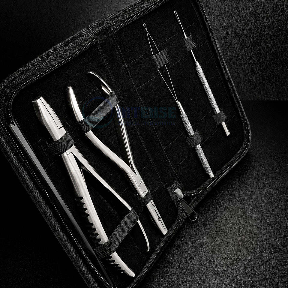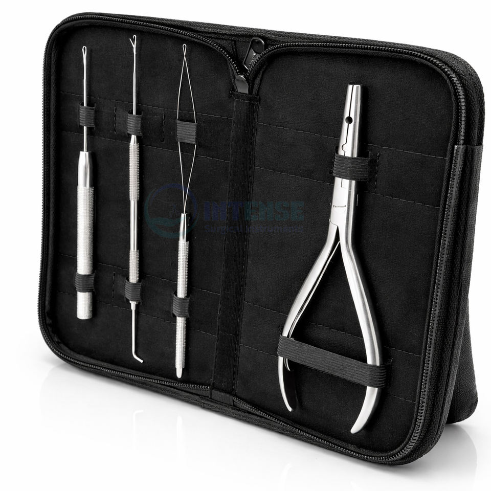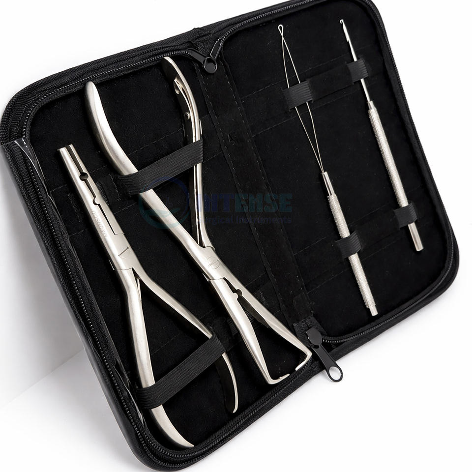 Precio de fábrica: Kit de 4 piezas de acero inoxidable para extensiones de cabello, herramienta de 7 pulgadas reutilizable para quitar y colocar extensiones, alicates y aguja de tracción.