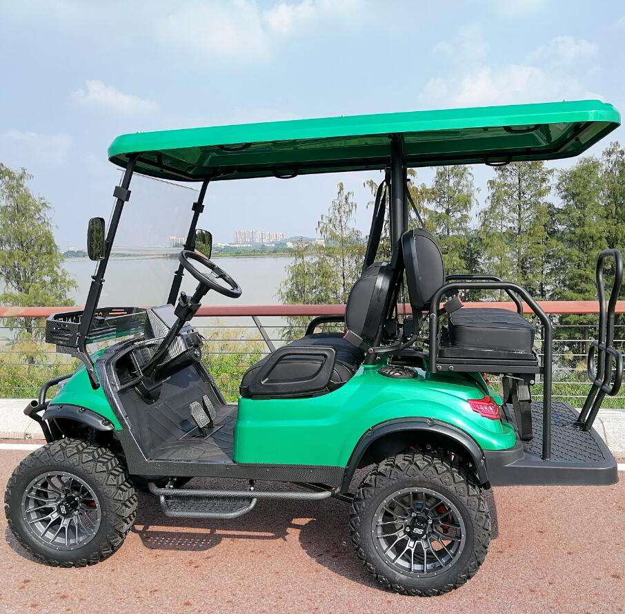 Carrito de golf elevado, pantalla de 10 pulgadas, carrito de golf eléctrico para 4 pasajeros