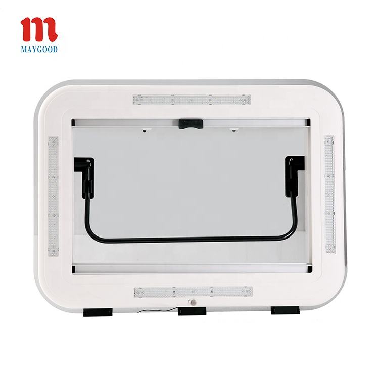 Precio de fábrica 960x650mm tragaluz de ventana de techo de aluminio con luces LED para Camping coche autocaravana