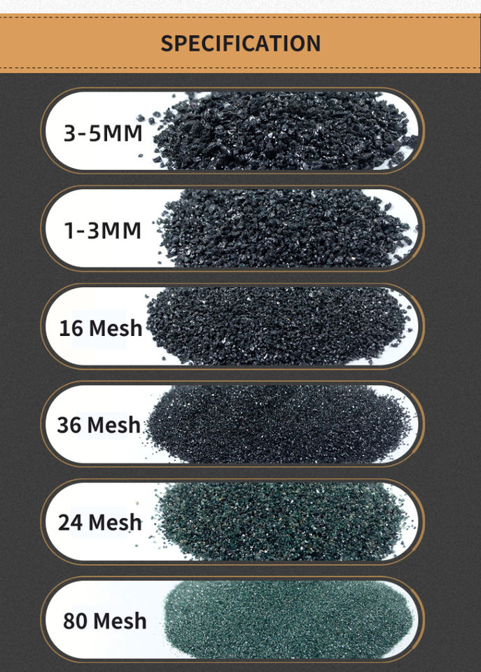 Precio de fábrica: Gránulos de carburo de silicio con 98% de pureza, arena de carburo de silicio, esmeril de SiC, grano de carborundo, micropolvo refractario para molienda