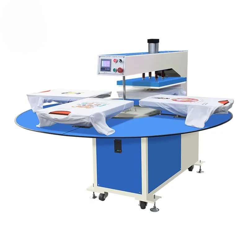 Precio de fábrica Automático Neumático Cuatro estaciones Rotación Tipo Máquina de prensa de calor con motor