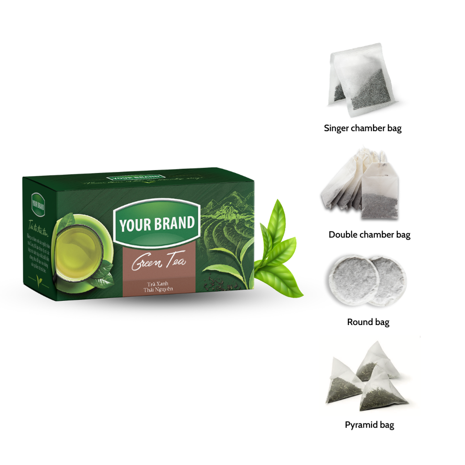 Precio de fábrica Bolsitas de té biodegradables Sabor único Hierbas de té verde 20 25 bolsas por caja Distribuidores de bolsas de té verde acogedoras