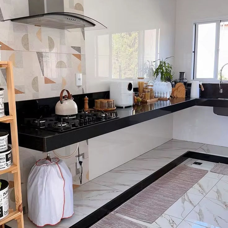 Precio de fábrica, encimera de granito Black Galaxy y azulejos de pared