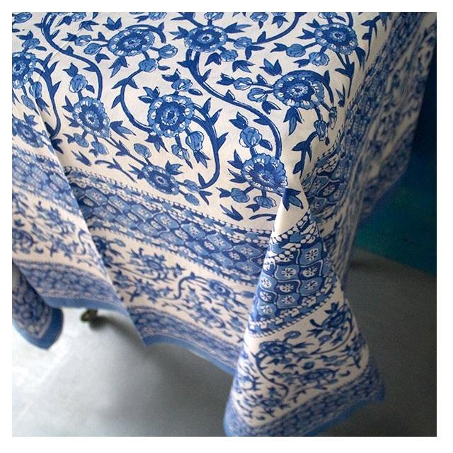Mantel de algodón con diseño de flores mezcladas, tela de algodón orgánico con certificado GOTS, Color azul y blanco, precio de fábrica