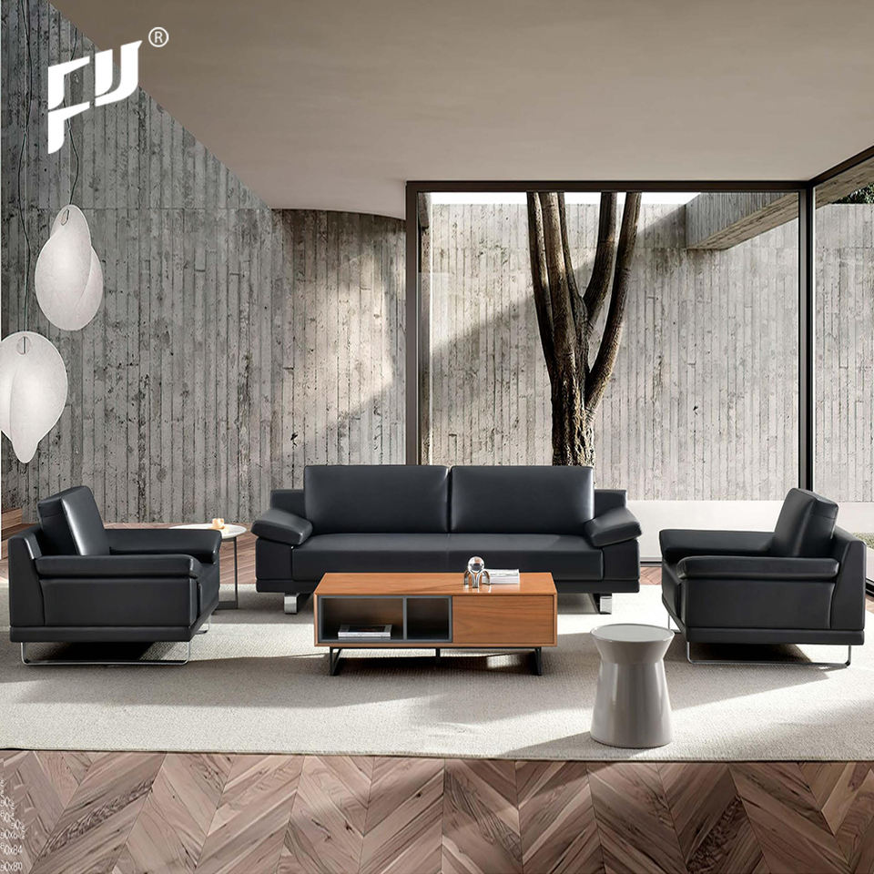 Juego de Sofás de Recepción a Precio de Fábrica, 1+1+3, Muebles de Oficina, Diseño Ejecutivo Popular, Sofá de Cuero