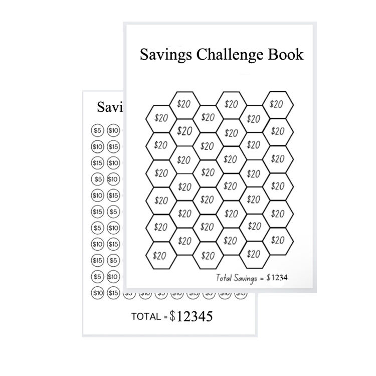 Libro de Desafío de Ahorro de Dinero en Efectivo A5 Personalizado con Precio de Fábrica, con Sobres de Plástico y Tarjetas con Pegatinas