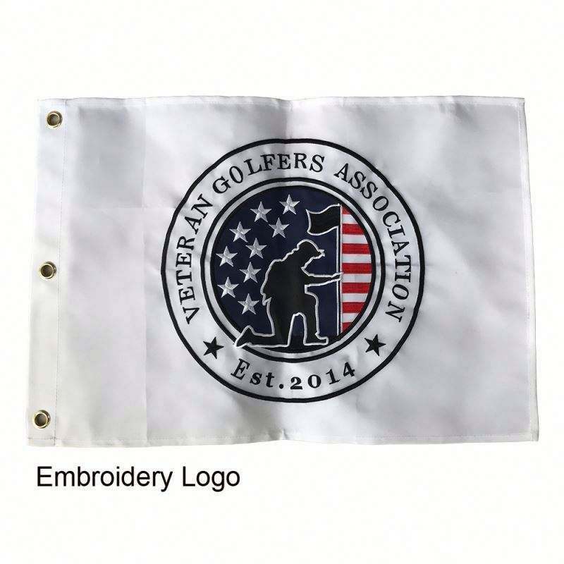 Precio de fábrica personalizado en blanco sublimación promocional marcado logotipo bordado personalizado Golf Pin bandera