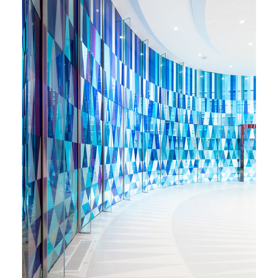 Precio de fábrica Capilla personalizada Impresión digital de color Hoja de vidrio decorativo laminado templado de color de Vidrio Curvo plano