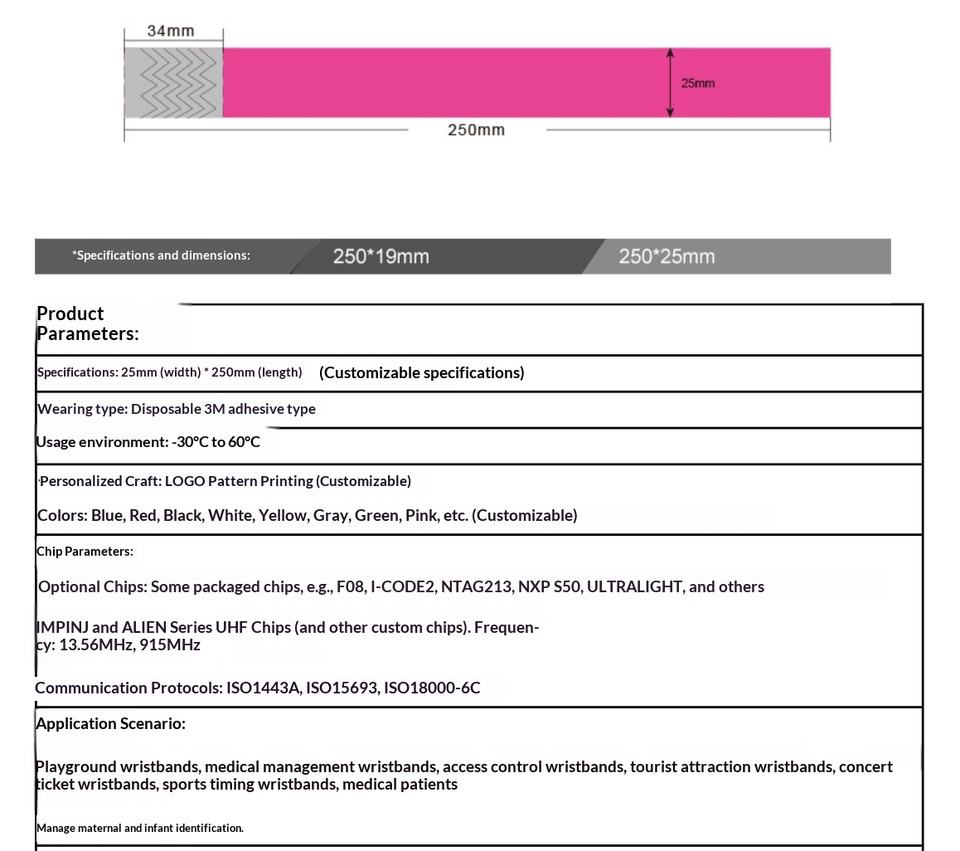 Pulseras de Papel MIFARE Ultralight EV1 de 128 Bits con Impresión Personalizada a Precio de Fábrica, Pulseras Desechables con Chip para Eventos