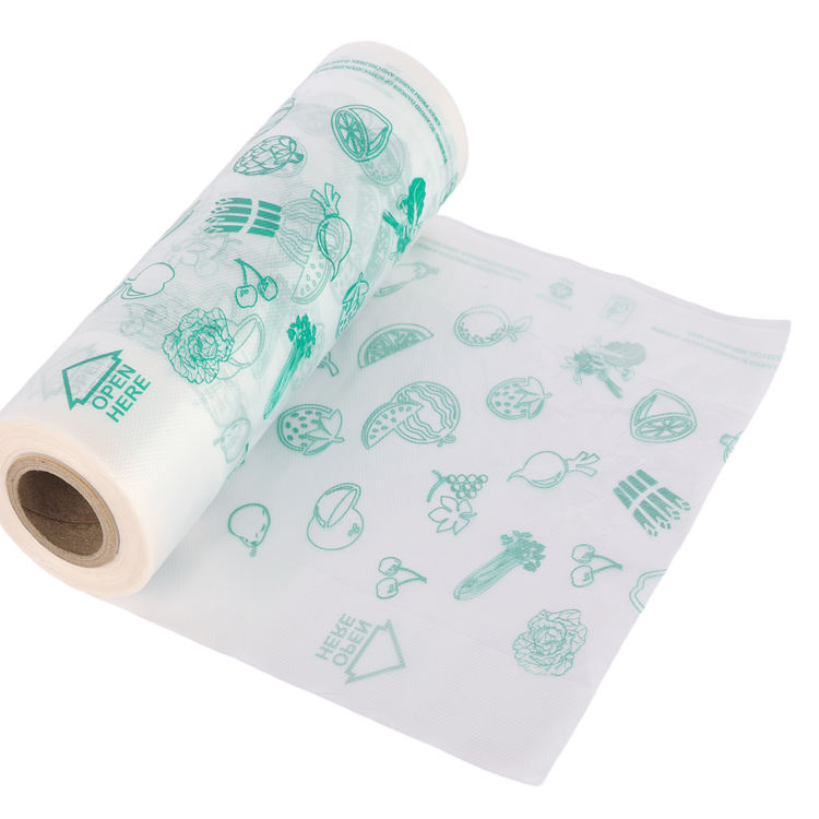 Precio de fábrica Bolsa de embalaje de frutas vegetales frescas respetuosa con el medio ambiente Bolsas de plástico en rollo con punto de interrupción