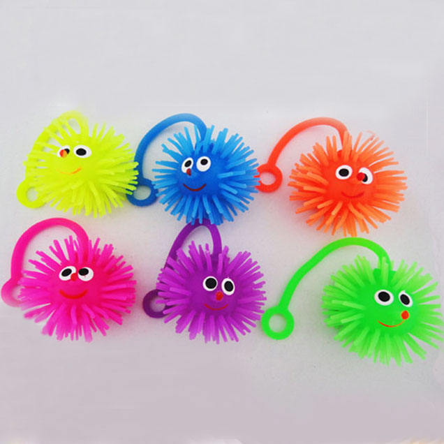 Bola peluda con luz led elástica, juguete antiestrés, juguete para apretar