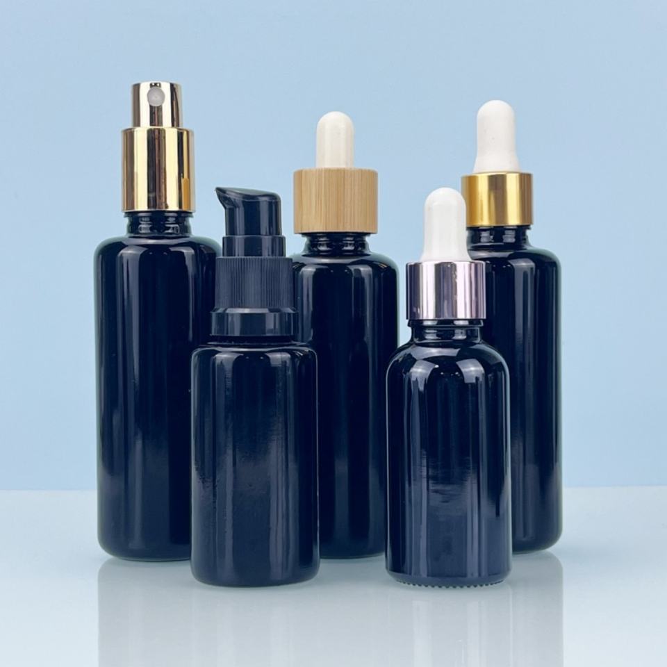 Botella de Spray de Vidrio Violeta Vacía con Tapa Dorada, Precio de Fábrica, 15ml 30ml 50ml 60ml 100ml, Botella Redonda con Bomba para Loción con Protección UV