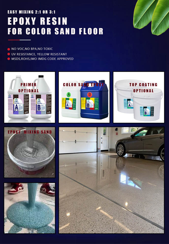 Precio de fábrica Resina epoxi Suelo de arena de color Líquido autonivelante Pintura de arena de color epoxi para pisos de cemento