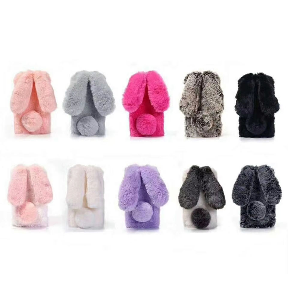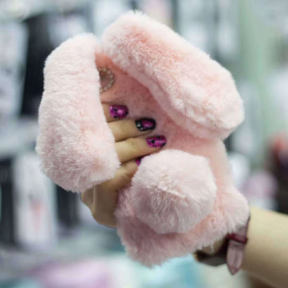 Funda de Teléfono Móvil de Felpa con Orejas de Conejo y Diamantes de Moda a Precio de Fábrica para iPhone 15 14 13