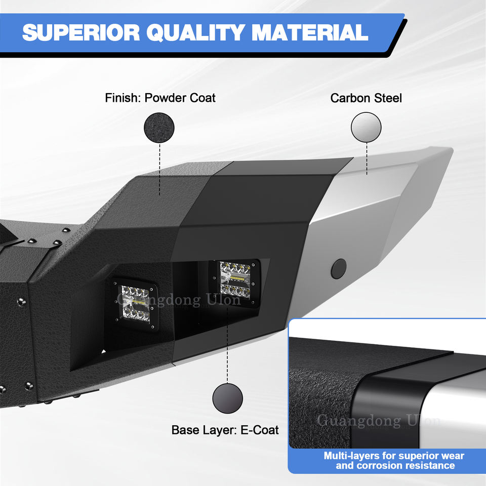 Parachoques delantero y trasero a precio de fábrica compatible con 2015-2019 GMC Sierra 2500/3500 HD con placa de cabrestante, barra de luz LED y anillos en D