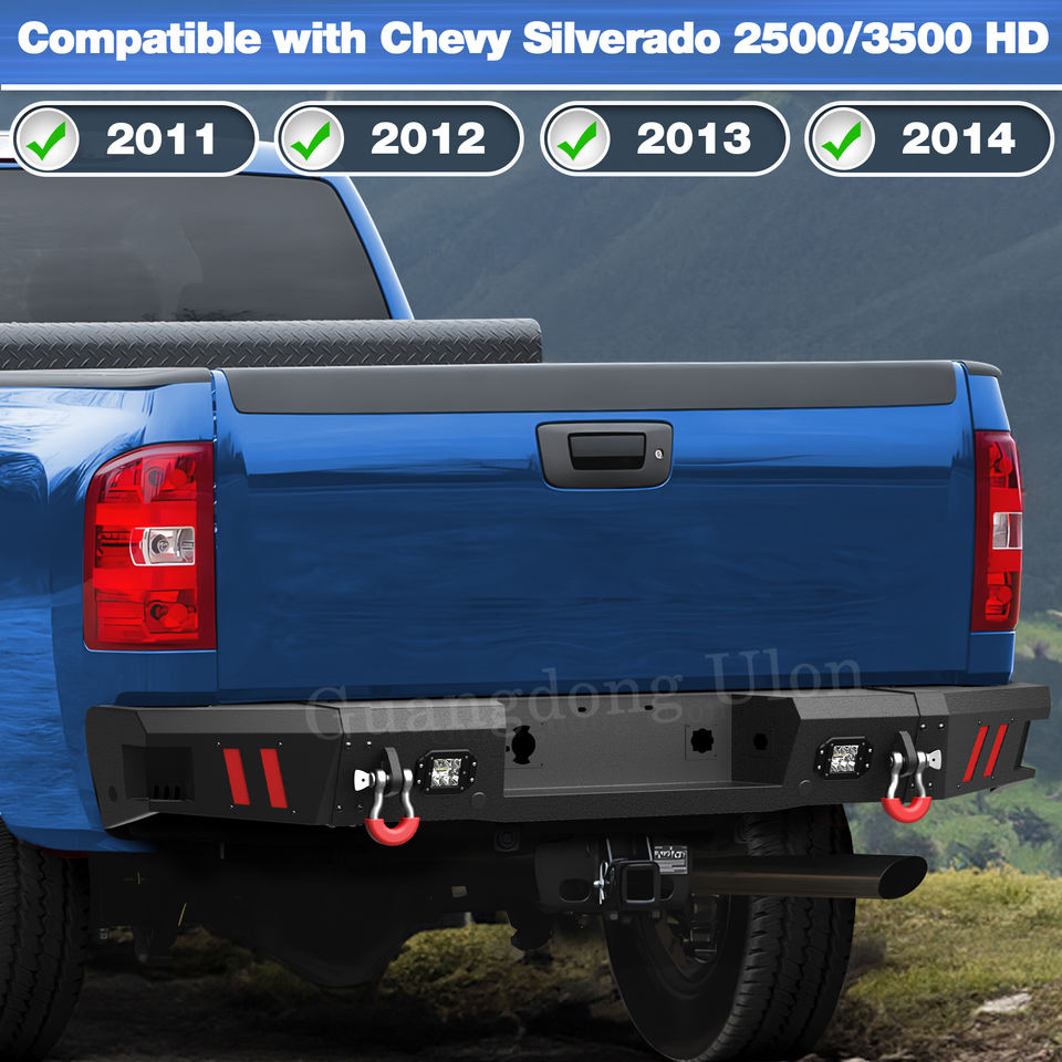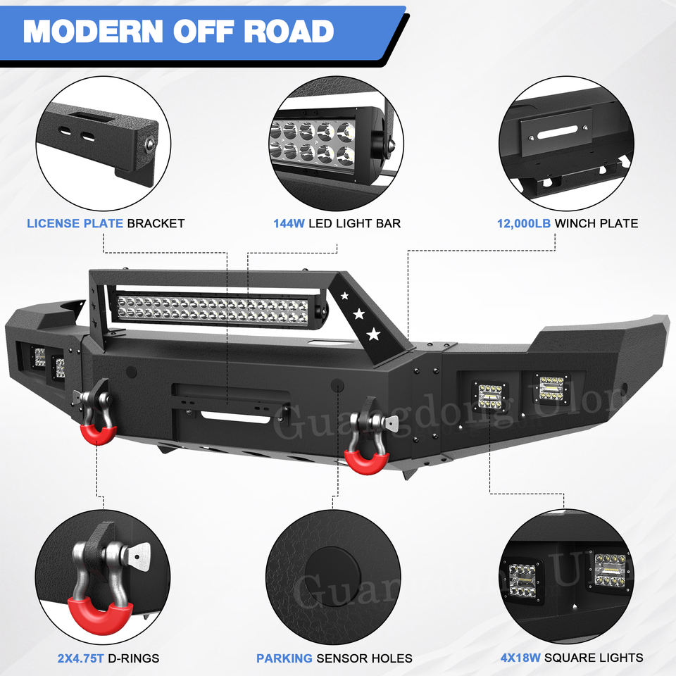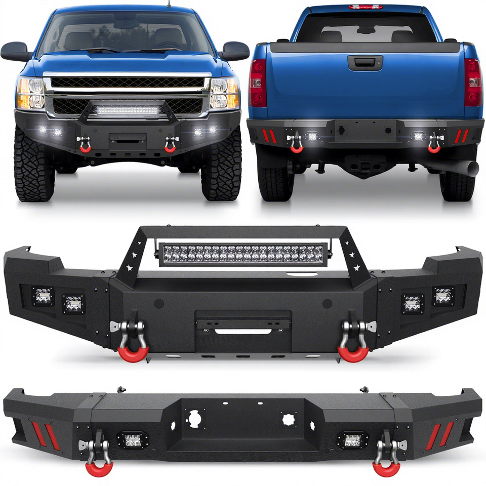 Parachoques delantero y trasero a precio de fábrica para camioneta Chevy Silverado 2011 2014 HD 2500-3500 con placa de cabrestante, LED y anillos en D