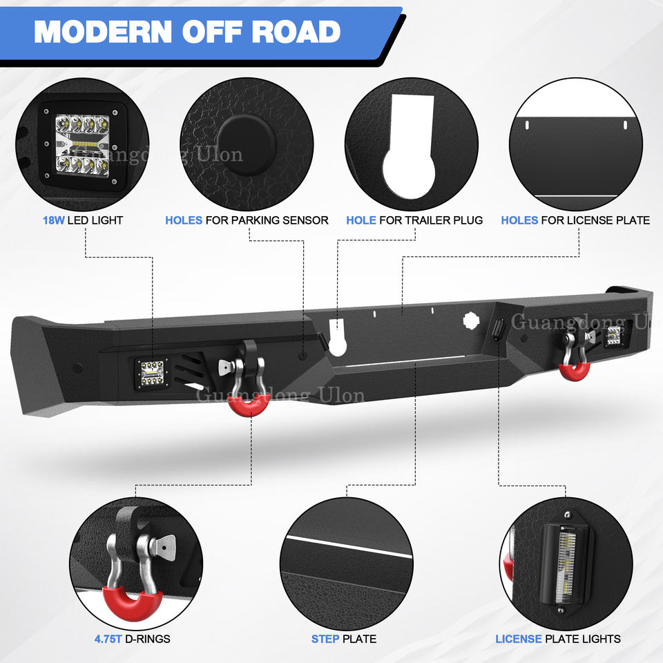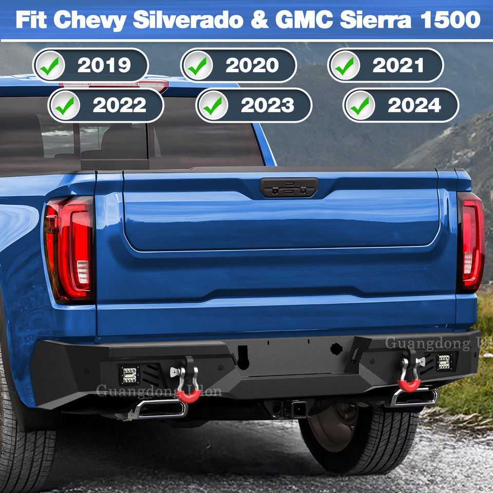 Parachoques Delantero de Ancho Completo con Cabrestante y Parachoques Trasero con Escalón a Precio de Fábrica para Camioneta Pickup Chevy Silverado 1500, GMC Sierra 1500 2019-2024