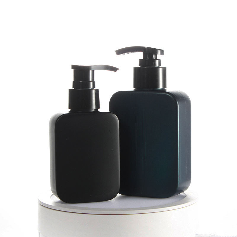 Precio de fábrica HDPE plástico cuadrado 300ml mascota vacío aceite esencial cuerpo loción champú serigrafía bomba rociador botella