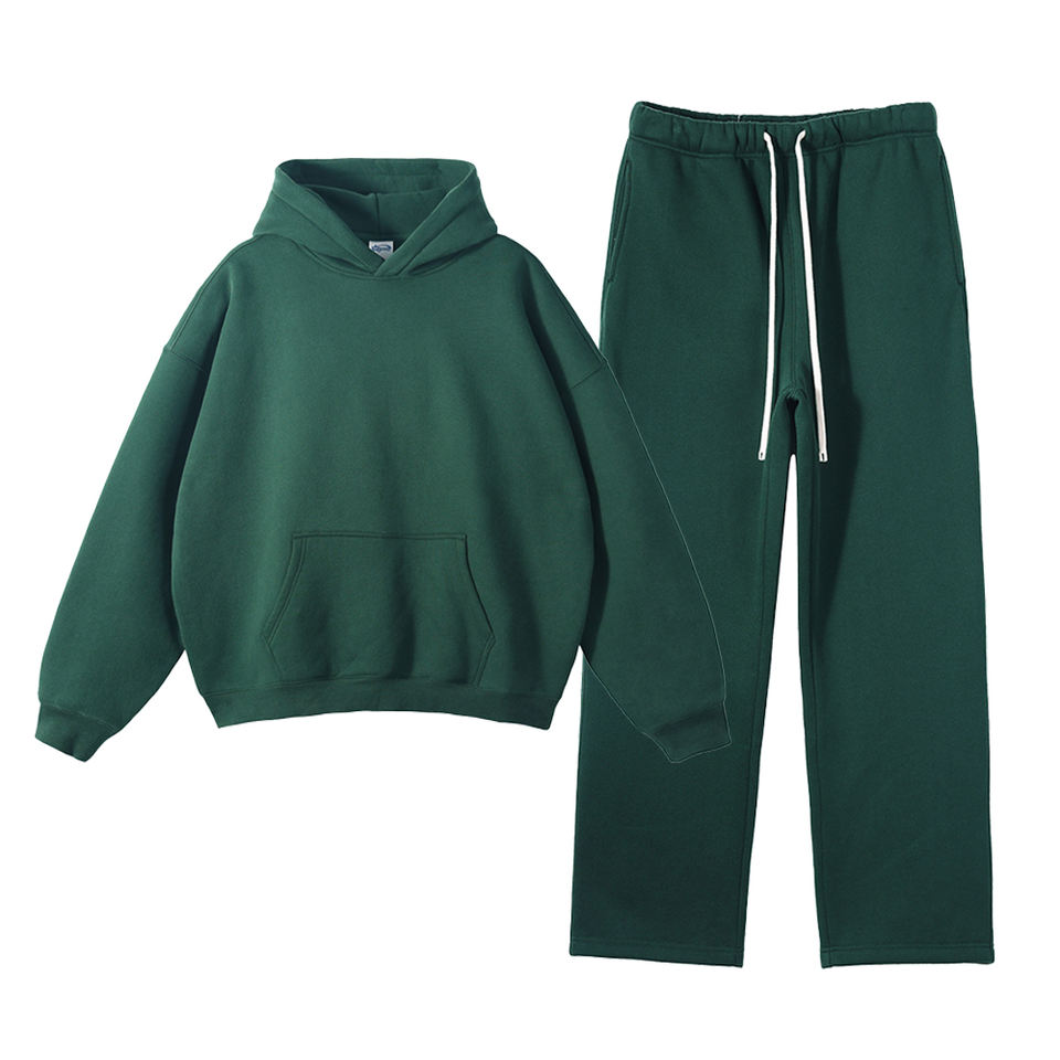 Precio de fábrica Peso pesado 350GSM Algodón Poliéster Color sólido Lavado ácido Personalizado Hombres Sudaderas con capucha y pantalones de chándal 2 PIEZAS DDP Envío