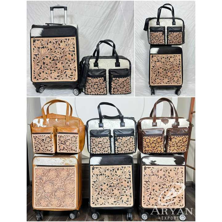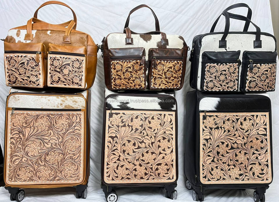 Juego de equipaje de viaje de cuero de vaca repujado a mano