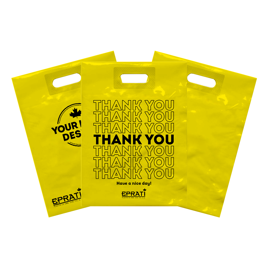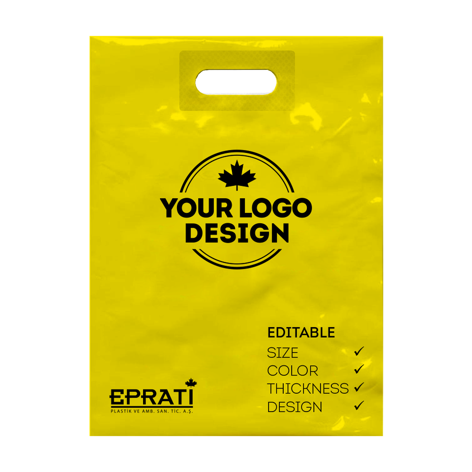 Bolsa de Compras de Plástico Reforzada con Asa Troquelada Personalizada, Precio de Fábrica, Alta Calidad LDPE, Turquía
