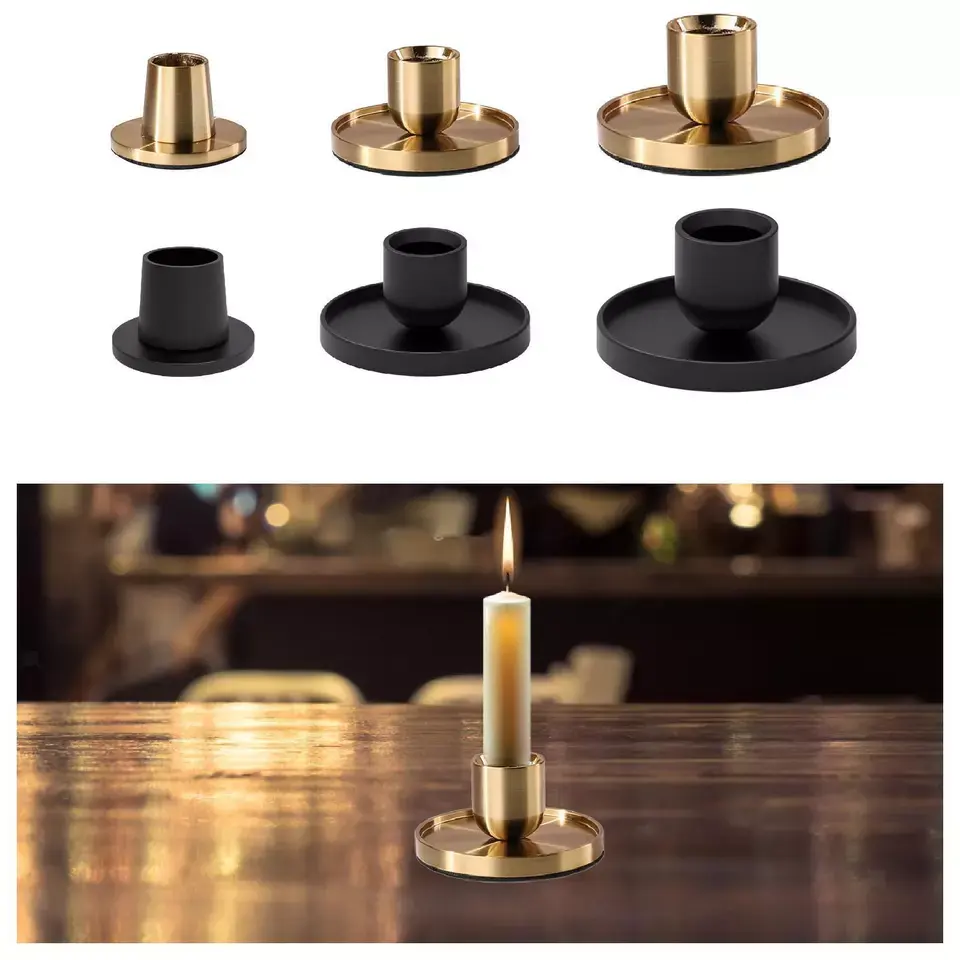 Precio de fábrica Decoración para el hogar Soporte de vela simple Metal galvanizado Chapado en oro Portavelas cónico para bodas