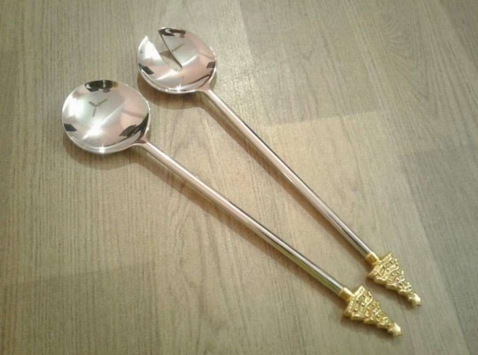 Precio de fábrica, superventas, último diseño, acero hecho a mano con acabado dorado chapado en oro, juego de cubiertos dorados, utensilios de cocina, herramientas para ensaladas
