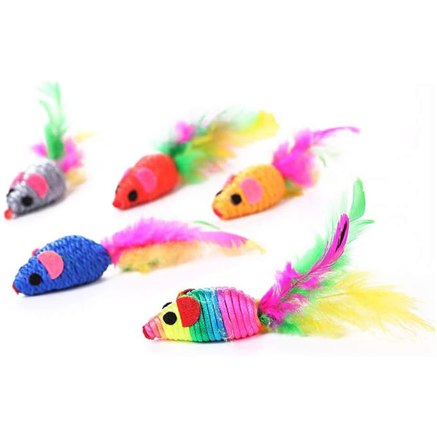 Juguetes para Gatos con Plumas Coloridas de 5 cm, Interactivos y Realistas, Precio de Fábrica, Juguetes para Masticar con Forma de Ratón