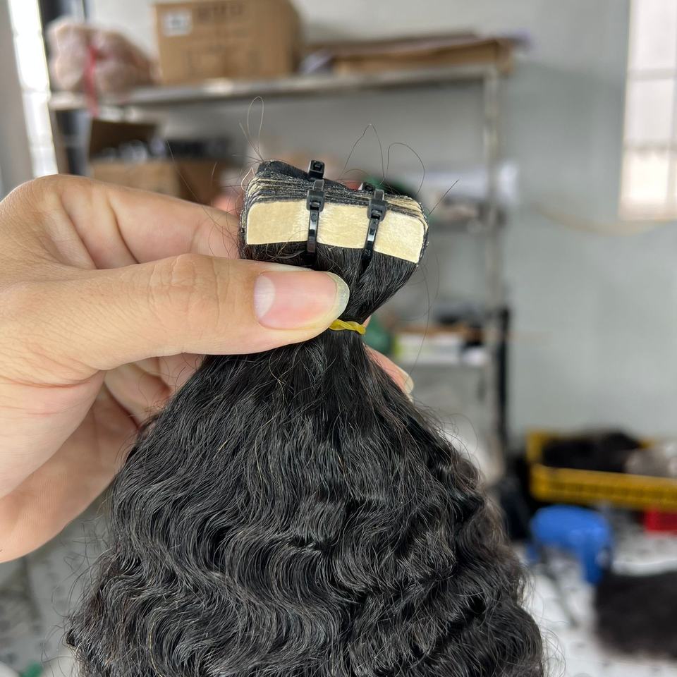 Cinta de pelo rizado birmano, pelo virgen de doble estiramiento, extensión de cabello humano 100% sin procesar, Color Natural, lista de precios de fábrica
