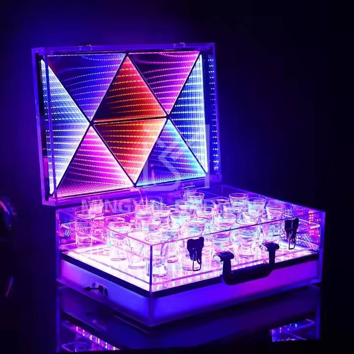 Precio de fábrica, diseño de lujo, bandeja de copa de vino brillante, caja de almacenamiento de copa de vino portátil, accesorios de barra de gama alta