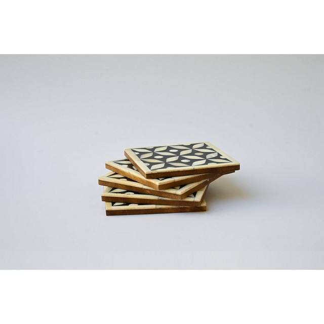 Juego de posavasos de Color blanco y negro con incrustaciones de hueso de resina MOP de gran venta, estilo de modelo usado para fiesta de oficina y restaurante