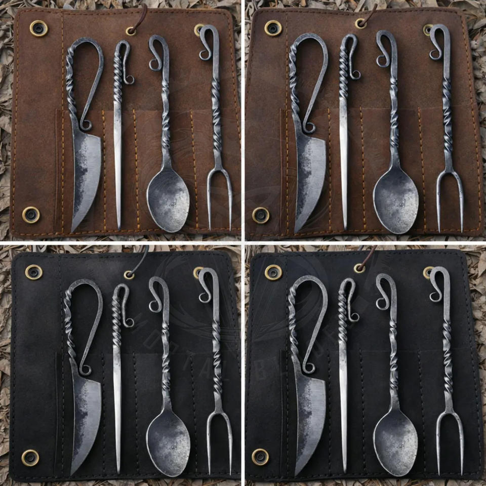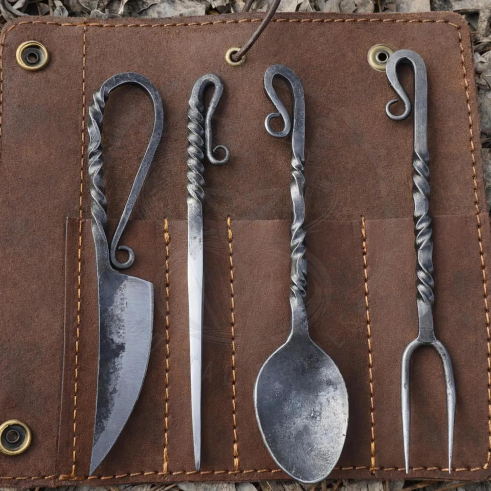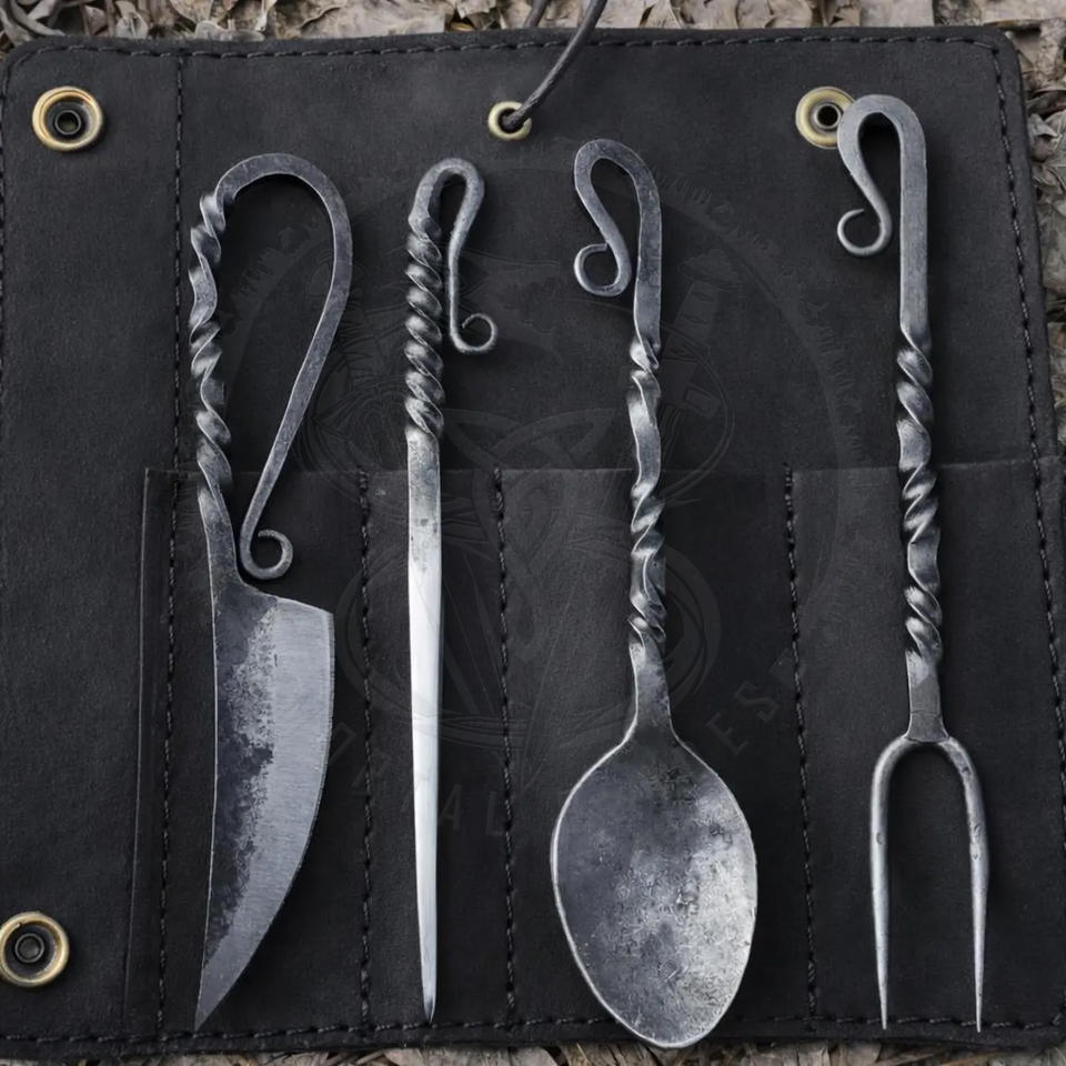Juego de Cubiertos Medievales Forjados a Mano, Cuchillo, Cuchara y Tenedor Vikingos, Nuevo Diseño, Juego de Cubiertos Vikingos a Precio de Fábrica