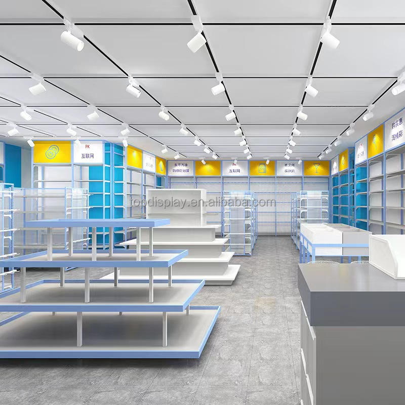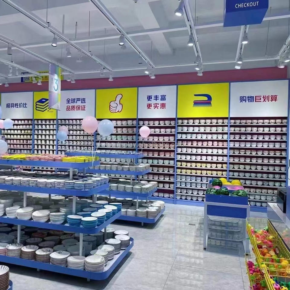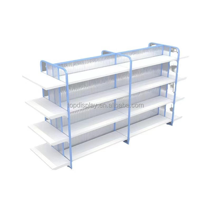 Estante de supermercado de acero de múltiples capas a precio de fábrica, estantes de góndola usados giratorios fijos de doble cara de metal de alta calidad